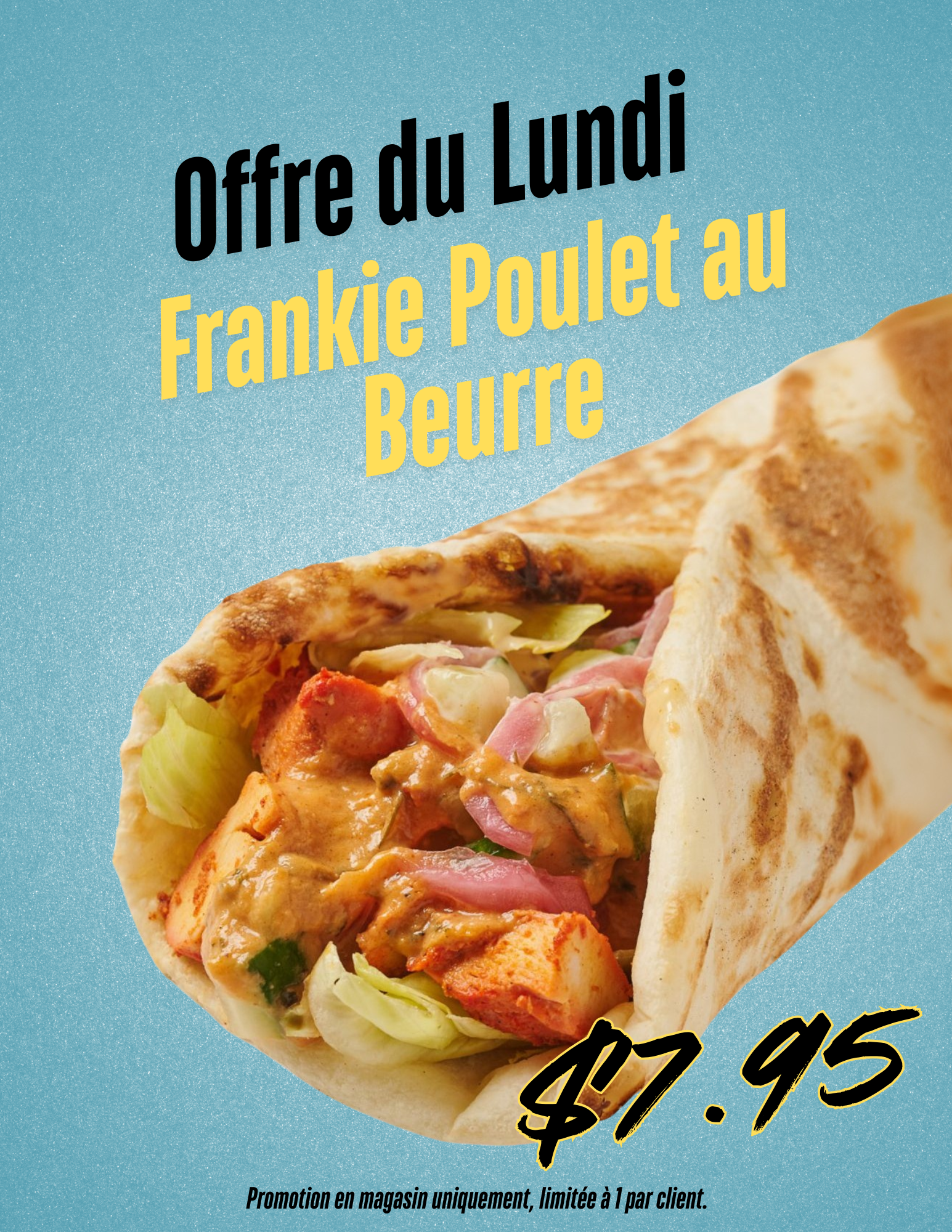 Ne manquez pas cette opportunité incroyable de déguster notre fameux bol poulet au beurre accompagné de naans moelleux.